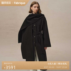 Fabrique经典黑美利奴绵羊毛山羊绒浴袍式毛呢大衣女冬季新品