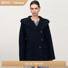 Fabrique 午夜蓝绵羊毛学院风连帽毛呢短款大衣2025年冬季新品